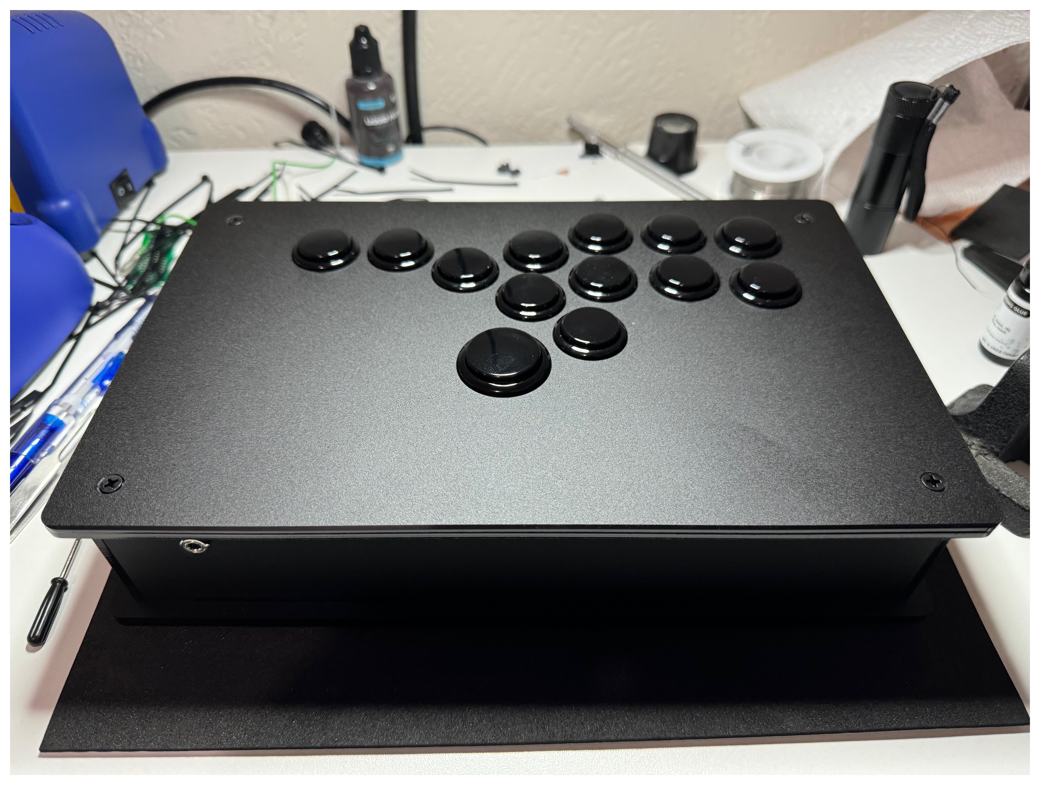 A leverless (or stickless) controller is a type of arcade controller that uses buttons for movement controls instead of an arcade stick. One popular example is the Hit Box. I recently created a custom leverless controller using the electronics from Playstation 5’s DualSense controller, an enclosure purchased from Eternal Rival, and various other components. The practice of utilizing an existing game controller’s electronics in a custom arcade controller is commonly referred to as “padhacking”. Here, I document the parts I used and steps I took to complete this project.